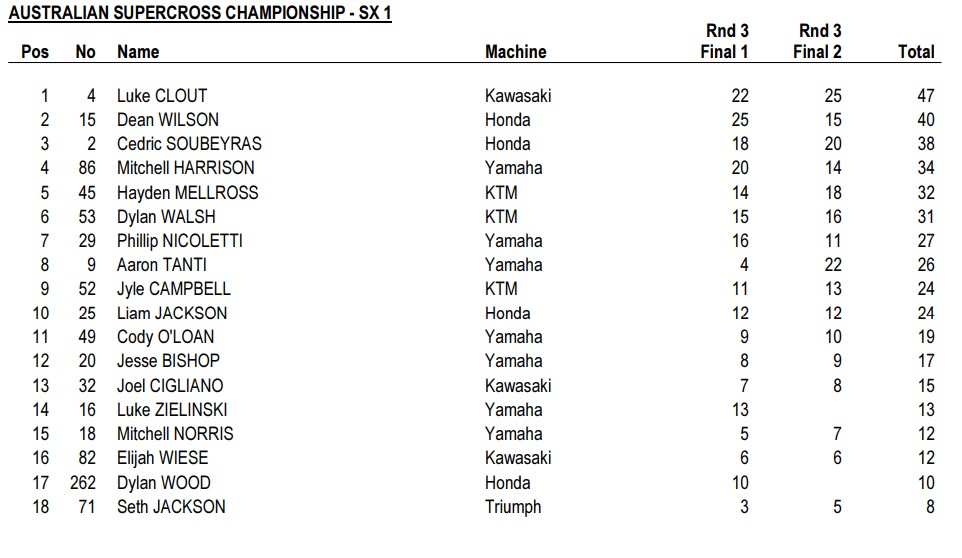 Dean Wilson thought he had another perfect night in Sydney as he went 1-1 in the SX1 class. However, he picked up 5 position penalty imposed by Clerk of Course for jumping under yellow flag. This meant Luke Clout took the overall win on the night. [EDIT: after an appeal, the penalty was dismissed and Dean Wilson got the win ahead of Luke Clout and Cedric Soubeyras]