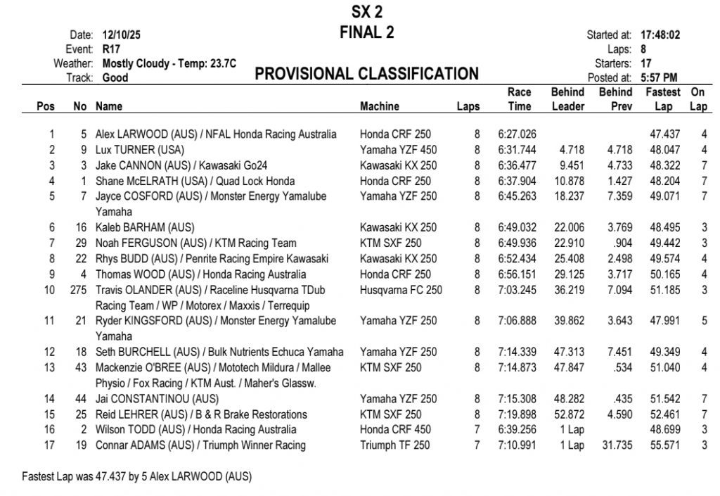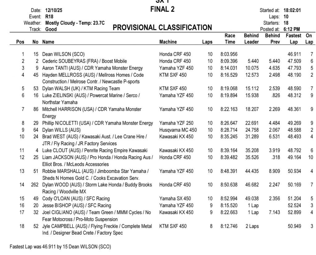 Results: Australia Supercross RD2 – Emotional Wilson dominates night two in Australia despite loss of his mum