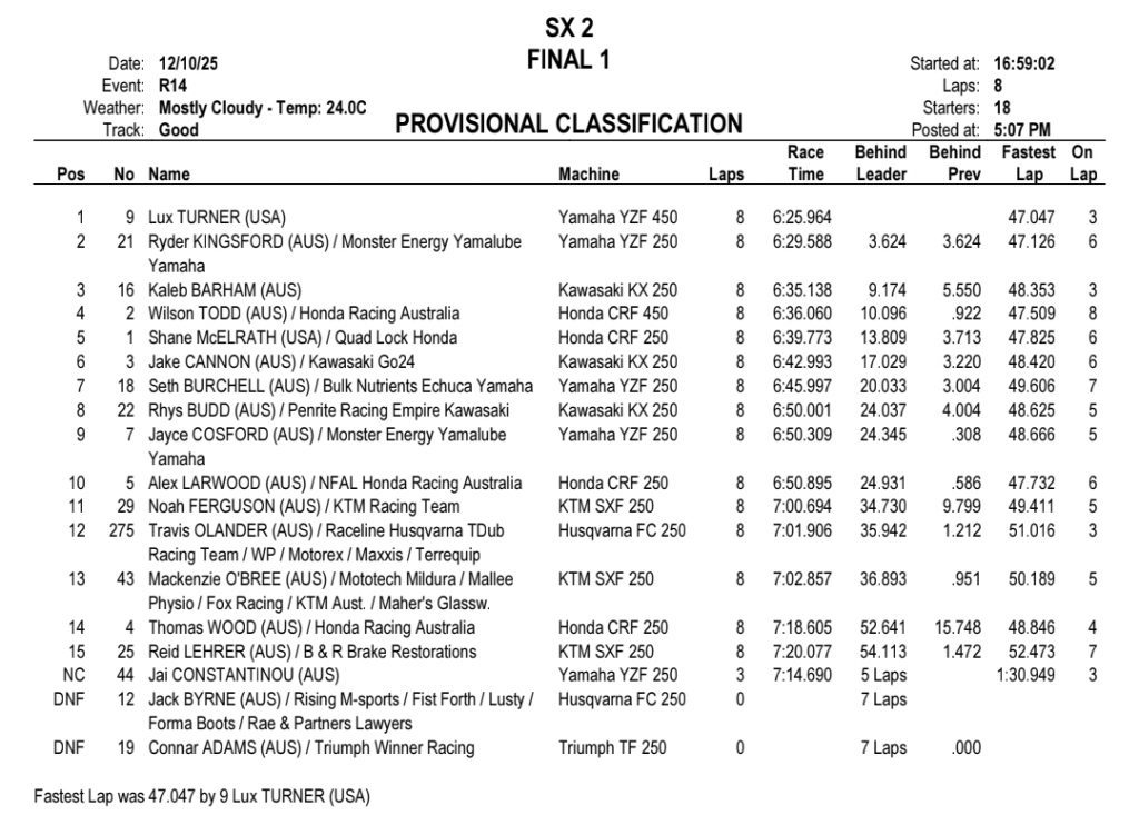In MX2 Lux Turner took the overall win with Shane McElrath off the podium.