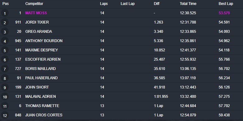 It was Matt Moss who took the win in the SX1 class ahead of Jordi Tixier with Greg Aranda rounding off the podium.
