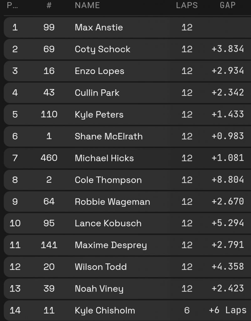 Max Anstie won all three motos in another great display but Coty Schock was also on form and kept Anstie honest all night with Enzo Lopes strong all day for third overall.