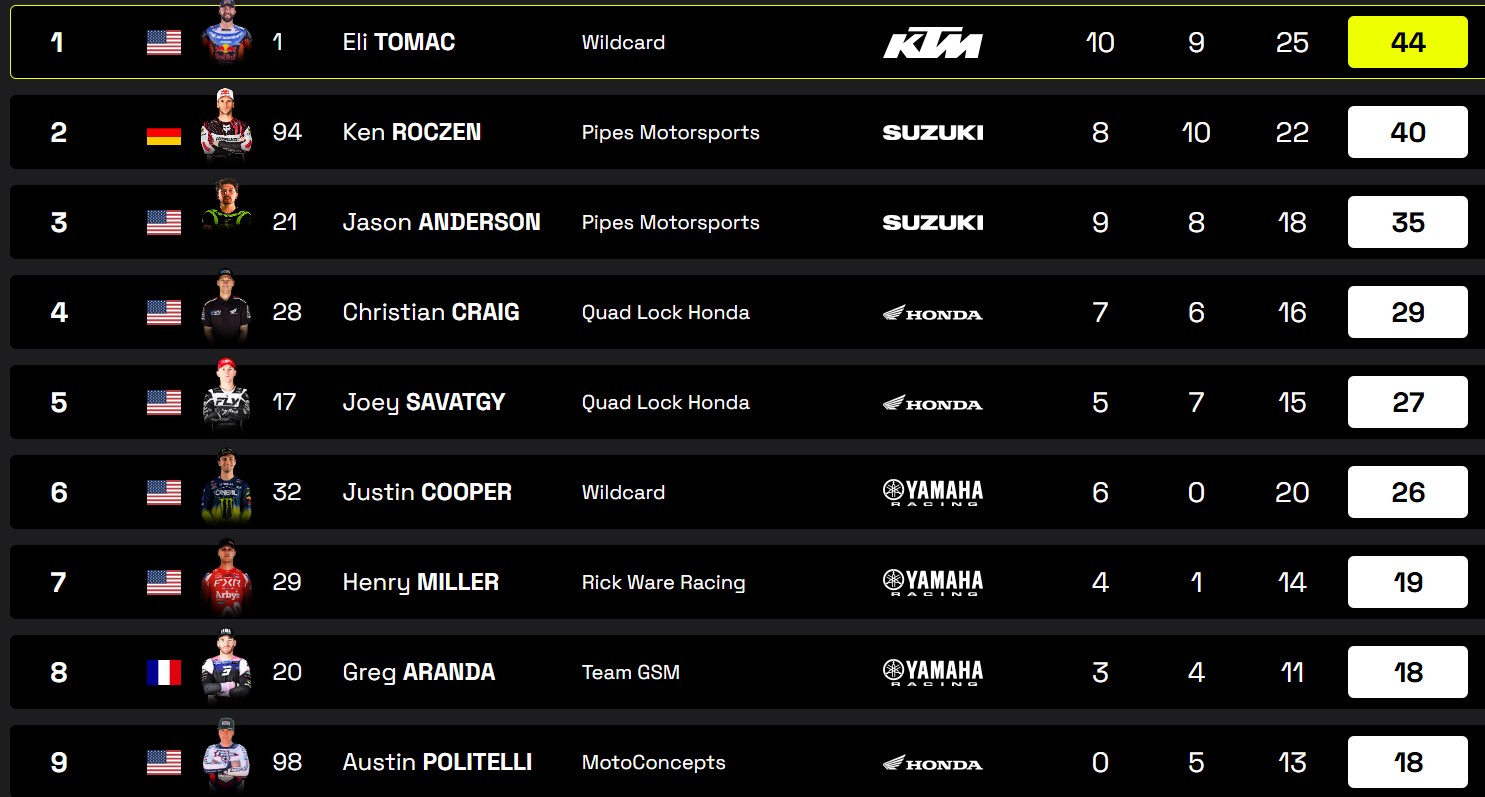 Eli Tomac and Ken Roczen split moto wins in the sprint races but it was Eli Tomac who won the deciding main event with a holeshot on the KTM!