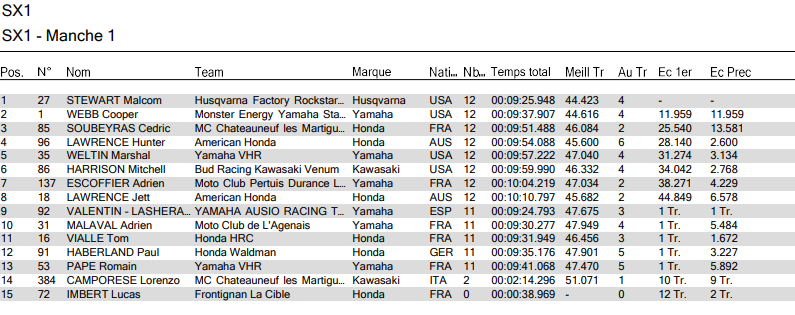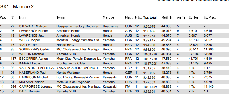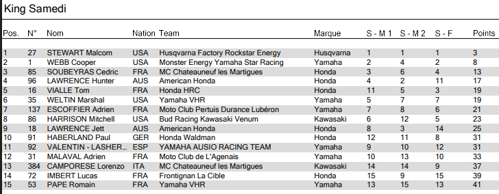 Cedric Soubeyras will be delighted with third with Hunter Lawrence getting back to fourth and Marshal Weltin rounding out the top five.