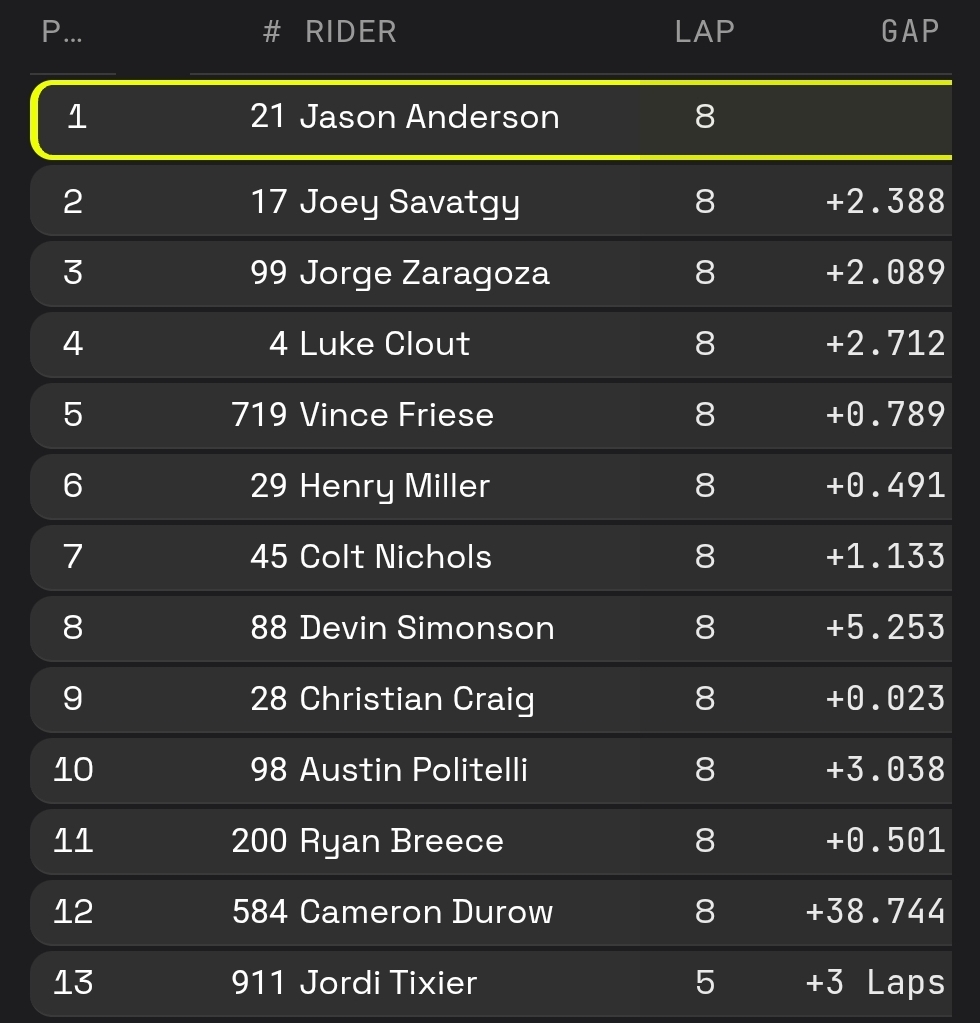 Jason Anderson and Joey Savatgy went all out in bar-banging warfare for the World Supercross Championship with Anderson taking the win and the title after Savatgy went for the kill in the penultimate corner but missed giving Anderson breathing room in the final turn to clinch the 2025 SX1 World Supercross Championship after riding on the ragged edge to do it!