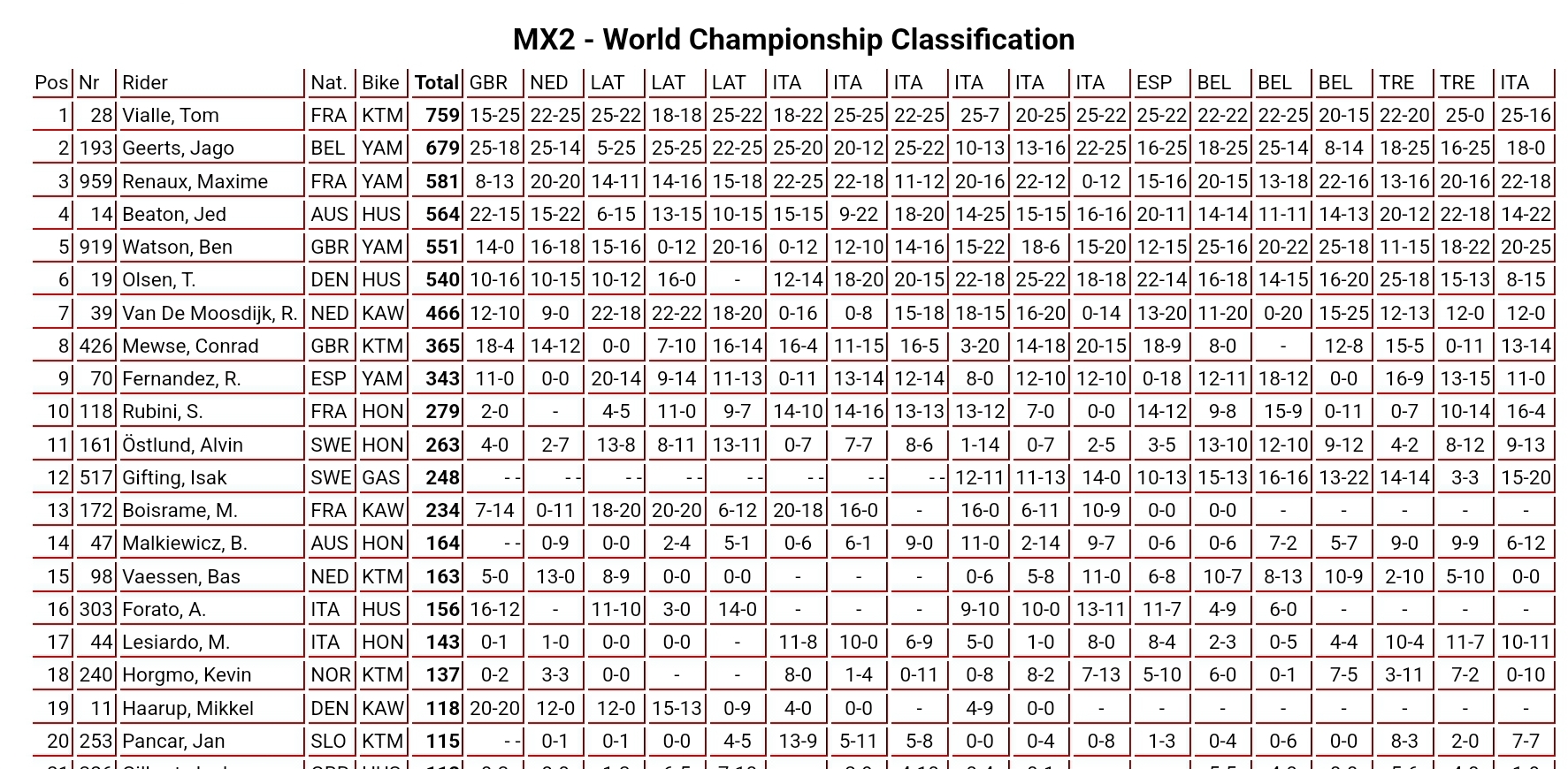 While Mewse said: “It was a really good day in the championship for me with 1-2 finishes. I got a really good start in the first one and managed to hold Herlings off for the whole race. On the last lap I heard him coming but I was trying so hard to keep my cool and focus on my riding as I knew the only way he could pass me was if I made a mistake. And the track was tough and so difficult to pass on. In the second race I got an even better start but I got excited and sat up a bit early, and the bike wheelied a bit. All my fault really. But second to Jeffrey is a great way to start the series.”