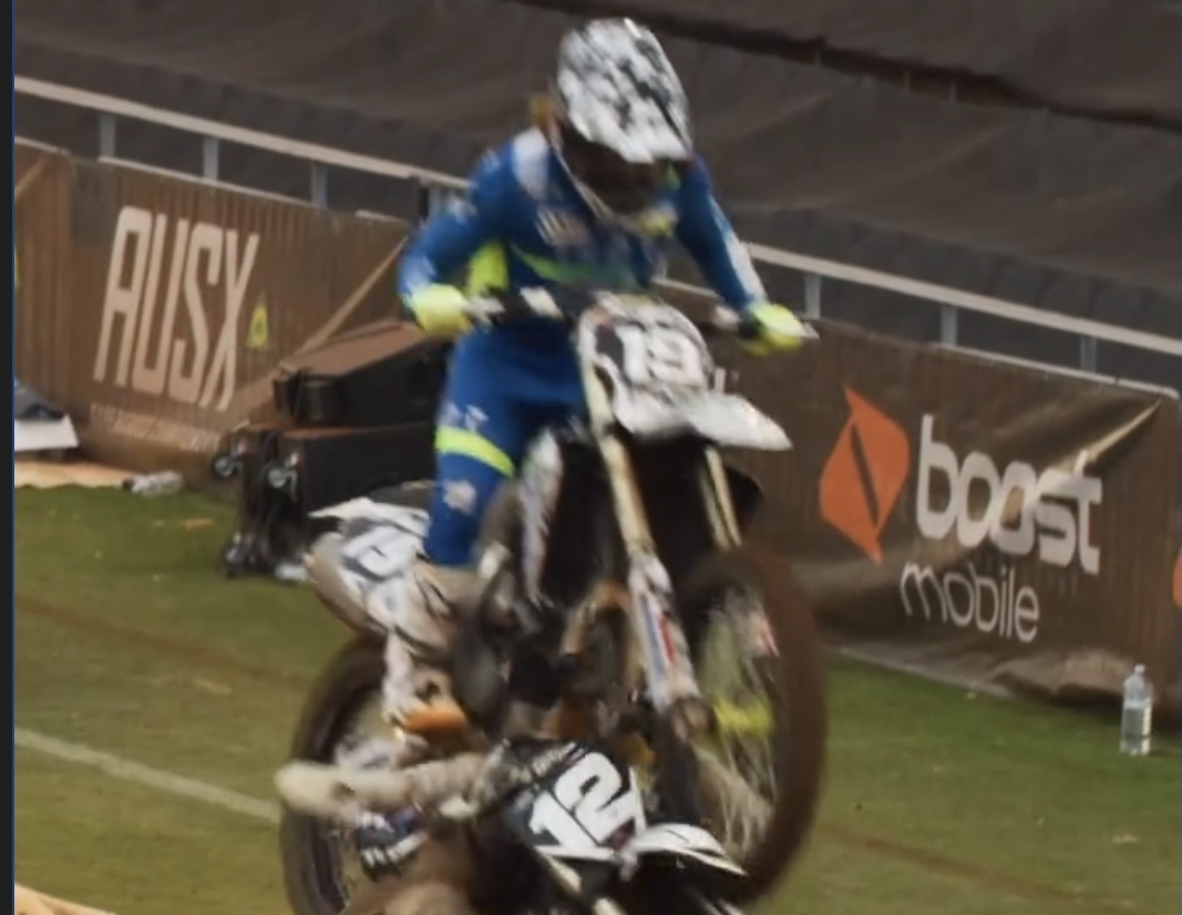 Jack Byrne was somehow able to walk away from this nightmare situation after being landed on by another rider over a triple! Watch the footage from Aus X supercross below: